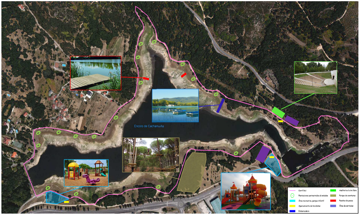 O proxecto detalla a creación dun corredor peonil seguindo o río Loña e a súa restauración ambiental; a construción dun auditorio ó aire libre en Cachamuíña; un carril bici no perímetro do encoro conectado cos camiños existentes cara localidades de Pereiro ou Nogueira; un aparcadoiro de bicicletas; a mellora do actual camiño peonil do encoro e a eliminación de barreiras arquitectónicas; un parque infantil e un espazo multiaventura; a construción dun embarcadoiro e postos de pesca; un observatorio de avifauna con paneis informativos; a restauración ambiental da ribeira; a creación dunha zona de restauración e hostalería con aseos públicos; a instalación de iluminación e a instalación de fontes públicas. Os socialistas propoñen na moción que a Deputación de Ourense redacte os proxectos e realice as xestións necesarias con outras administracións ou organismos competentes para a súa execución. Tamén reclaman que a institución financie a obra con recursos propios e con fondos procedentes de convenios ou subvencións.