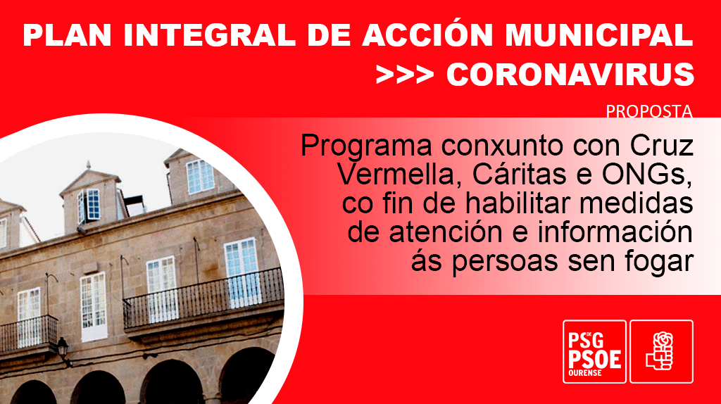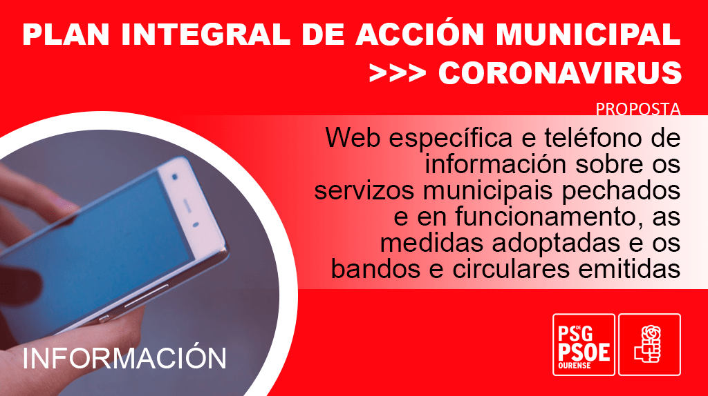 A continuación, resúmense as principais medidas do Plan Integral de Acción Municipal contra o coronavirus proposto polo Grupo Municipal Socialista da cidade de Ourense: