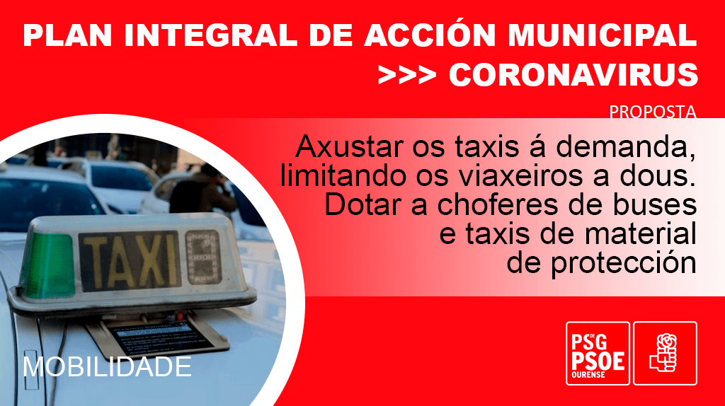 O PSdeG-PSOE reclama ao goberno de PP e D.O. accións “máis rápidas e contundentes”, como as que se están a aplicar en concellos galegos gobernados polos socialistas, entre as que se inclúen as referidas as persoas maiores que viven solas e ao servizo de axuda no fogar, sen esquecer as referidas ao transporte público (buses e taxis) e á limpeza de vías, rúas, mobiliario urbano e dependencias municipais, contemplando, así mesmo, a recollida do lixo, dotando ao persoal de medidas axeitadas en canto a material de protección (máscaras, luvas e xel) para evitar os contaxios.