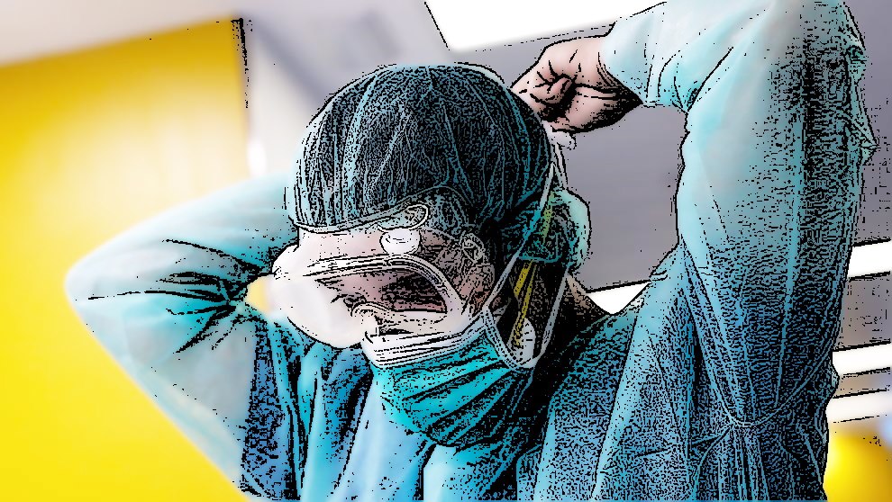 “X” troca as luvas de enriba por outras novas para diminuír a carga viral ou transmitir xermes e outras patoloxías ao doente da seguinte habitación. As usadas deposítanse nun contedor específico, como tamén se fai cos 3 ou 4 EPIs utilizados despois de 7 horas de duro traballo. Todo segundo marca o protocolo. Non obstante, os uniformes escasean, polo que pegan toallas á pel para eliminar a suor que empapa a casaca e deshidrata o corpo. Lavarse a cara, o pescozo e as mans fan o resto. O persoal sanitario esperaba que a crise do SARS-CoV-2 durase un mes, pero agora non se prevé fin, aínda que parece devecer o ritmo de casos. Hai persoal con cefaleas tensionais permanentes, baixas laborais, insomnio, desánimo…