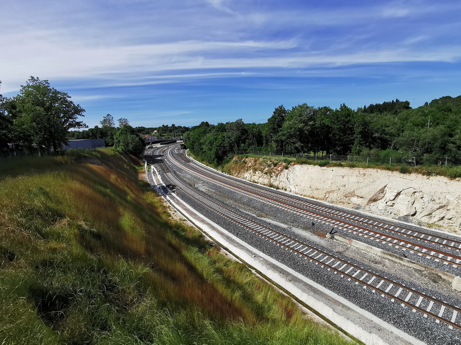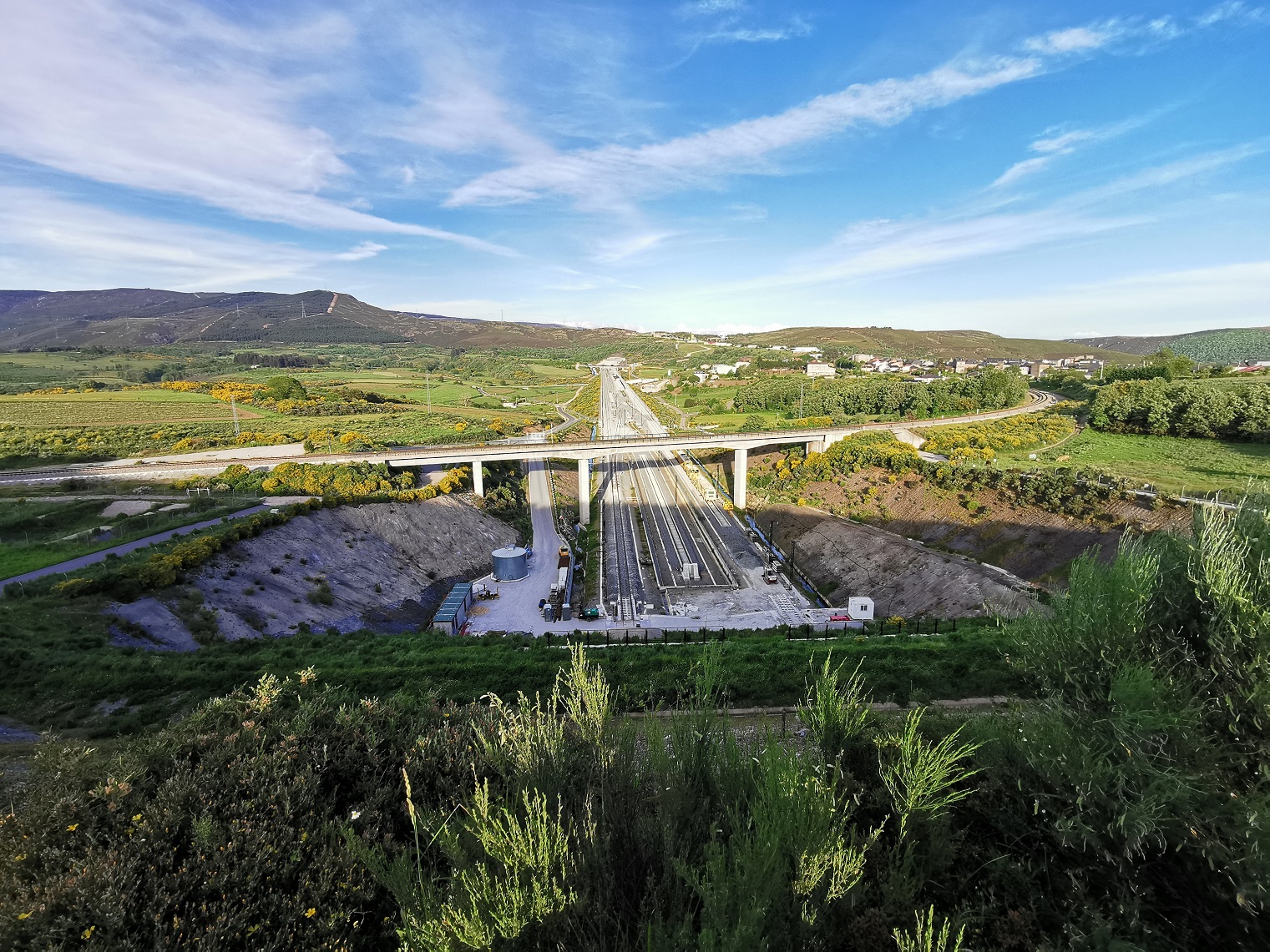 Nos tramos da LAV na provincia ourensá, os traballos avanzaron “a toda velocidade” nos últimos meses, tal e como se comproba nas imaxes que achegamos con esta información e que foron tomadas a pasada fin de semana nas contornas de Tabodela, Vilar de Barrio e A Gudiña. Actualmente están finalizando a instalación da superestrutura, é dicir, carrís, travesas, sinalización ou catenaria. Nalgúns subtramos estas obras xa están rematadas ou en fase moi avanzada debido a que o 72 % do percorrido executouse en vía sobre placa de formigón e non sobre balasto.