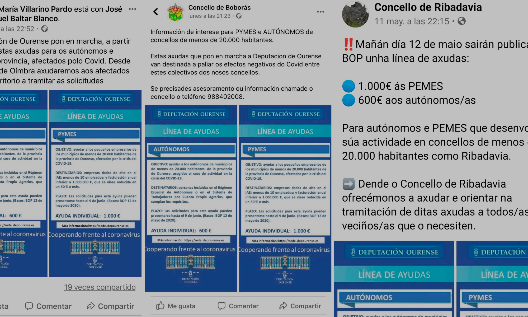O deputado, Nacho Gómez, asegurou durante o pleno ordinario de maio da Deputación que, ante estes feitos, parece evidente que “se venderon axudas antes de estar publicadas” mentres amosaba publicacións en redes sociais da de deputada e alcaldesa, Ana Villarino, ou dos perfís institucionais dos concellos de Boborás ou Ribadavia -gobernados polos conservadores- antes da obrigada publicidade no boletín oficial. “Aquí falamos de información privilexiada”, denunciou antes de advertir que, “polo de agora non entramos nas chamadas telefónicas, incluso días antes, que houbo e que xa se saberán”.