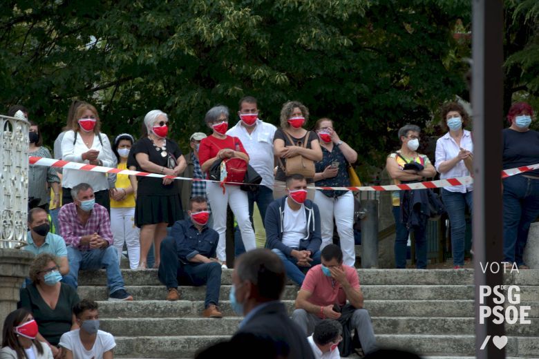 O candidato do PSdeG-PSOE á presidencia da Xunta de Galicia, Gonzalo Caballero, comprometeuse este sábado Ourense a “cambiar o plan da intermodal” da capital e a “sacar a estación de autobuses» de onde a quere incrustar Feijóo para que non rompa a cidade. Foi durante un acto no Xardín do Posío ante máis dun milleiro de persoas no que se superou o aforo e tiveron que quedar decenas de persoas fóra, no que tamén participaron o secretario xeral do PSOE e presidente do Goberno, Pedro Sánchez; a candidata número 1 ao parlamento galego por Ourense, Marina Ortega; e o secretario provincial, Rafa Villarino.