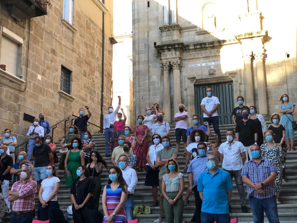 Ao acto, que se celebrou este martes na escalinata da Igrexa de Santa María Nai, acudiron os socialistas ourensáns acompañados de representantes sindicais e políticos do goberno e a oposición da cidade