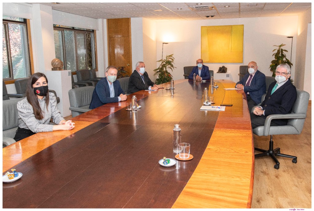 Madrid, 7 de outubro de 2020. O deputado, a deputada e o senador no Congreso e Senado, Adolfo Pérez Abellas, Uxía Tizón e Miguel Bautista, e o secretario provincial, Rafa Villarino, mantiveron hoxe un encontro co presidente de Renfe, Isaías Táboas, a fin de “impulsar e optimizar” os servizos ferroviarios da provincia de Ourense coas outras provincias galegas, así como as conexións de longa distancia cara o resto do Estado. Na reunión tamén estivo José Luis Cachafeiro, director xeral de operacións.