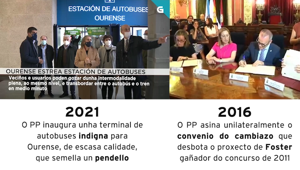 Ourense, 12 de febreiro de 2021. Resumimos nun minuto o medio de vídeo o pendello que a Xunta do PP empotrou na estación de Ourense e que pretende facer pasar por unha terminal digna para a terceira cidade Galicia.