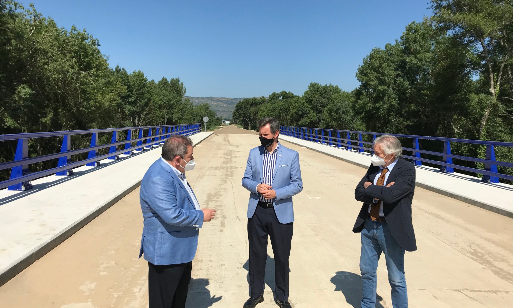 Acompañado polo subdelegado do Goberno en Ourense, Emilio González; José Miñones estivo en Verín co alcalde, Gerardo Seoane. Xuntos, visitaron a ponte de Queizás, concluída en marzo para conectar o polígono de Pazos coa Nacional 532 e cuxa construcción foi cofinanciada entre o Instituto para a Diversificación e Aforro da Enerxía (IDAE), pertencente ao Ministerio para a Transición Ecolóxica e o Reto Demográfico, e o Concello, con 800.000 euros e aportación estatal.
