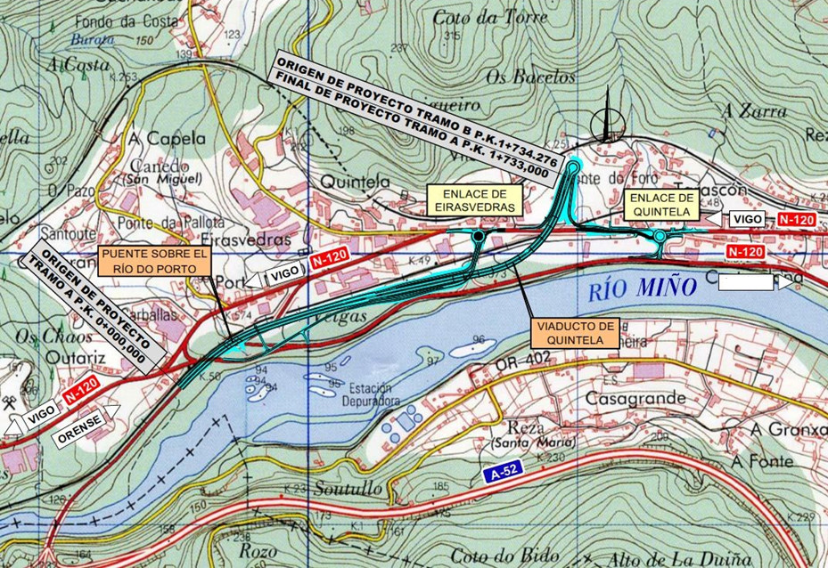 O tramo autorizado polo Goberno central hoxe, inclúe obras singulares como un viaduto sobre a N-120 e a liña ferroviaria Monforte de Lemos–Vigo; outra unha nova ponte sobre o río do Porto; e dous pasos inferiores baixo o tronco da vía e baixo un dos ramais de Quintela.