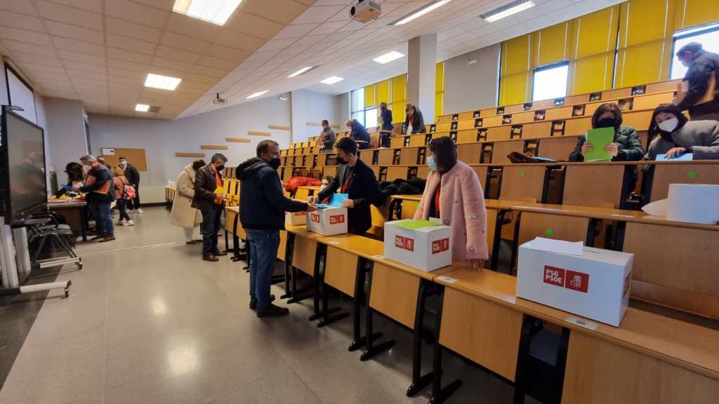 Ourense, 26 de febreiro de 2022. O PSdeG-PSOE de Ourense clausurou esta tarde o 4º Congreso Provincial no que Rafa Villarino, vencedor das últimas eleccións primarias, foi proclamado secretario xeral dos socialistas por segundo mandato consecutivo. Neste proceso congresual celebrado no salón Marie Curie do campus universitario da terceira cidade de Galicia, no que participaron máis de 250 persoas entre delegados, delegadas, convidados e convidadas, cunha mesa presidida pola alcaldesa de Xinzo de Limia, Elvira Lama, tiñan dereito a voto 87 delegados e delegadas.