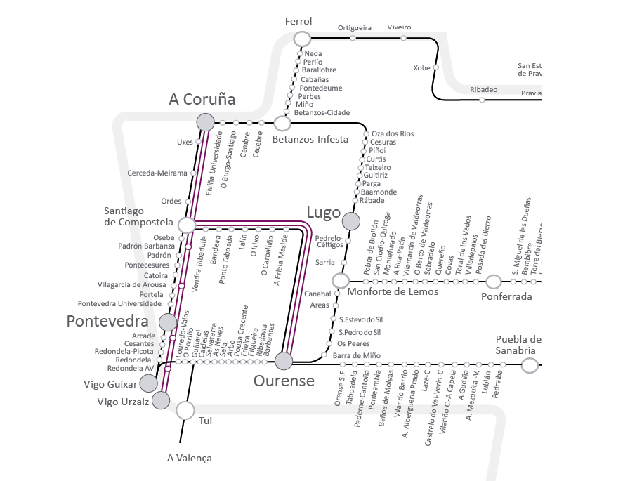 - Rexionais Exprés > trens de media distancia con menos paradas que os Rexionais.