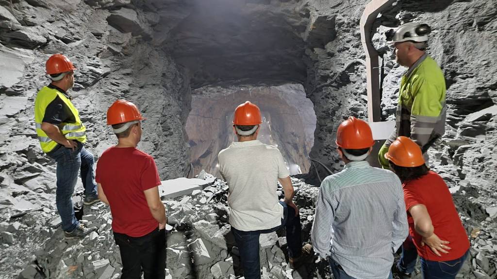 Ourense, 9 de agosto de 2022. O PSdeG-PSOE destaca a “vital importancia” do sector da lousa que se desenvolve na comarca de Valdeorras para a economía da provincia de Ourense. Logo dunha visita a unha das minas máis grandes desta industria, na que participaron os deputados e deputadas provinciais Aurentino Alonso, Elvira Lama, Alvaro Vila e Nacho Gómez, xunto ao alcalde de Vilamartín de Valdeorras, Enrique Álvarez, os e as socialistas reclaman un maior apoio institucional de todas as administracións públicas que permita o seu impulso, fortificación e diversificación.