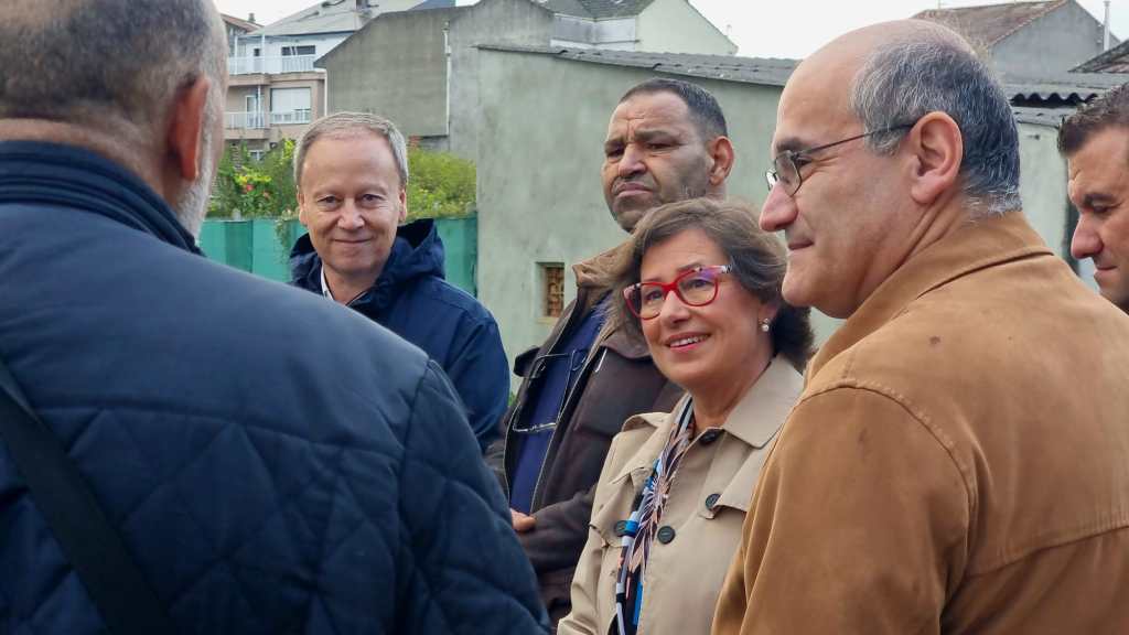 Elvira Lama defendeu desde Xinzo esta proposta acompañada do imán da vila, Mohamed Nouri; dos deputados, Rafa Villarino, Susana Rodríguez, Nacho Gómez e Marga Pérez; e do secretario provincial de migracións, Luis Gulín