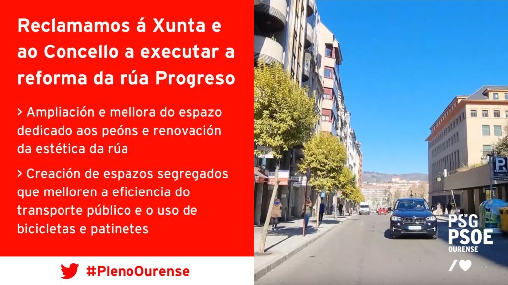 Na súa defensa desta iniciativa, a voceira do grupo socialista, Natalia González, lamentou que nos últimos anos “a rúa Progreso converteuse nunha autoestrada cun alto fluxo de vehículos e carencias importantes de iluminación, fochancas e inseguridade para os peóns posto que Xunta de Galicia e os últimos gobernos PP-DO nunca se puxeron de acordo para levar a cabo unha reforma integral”.