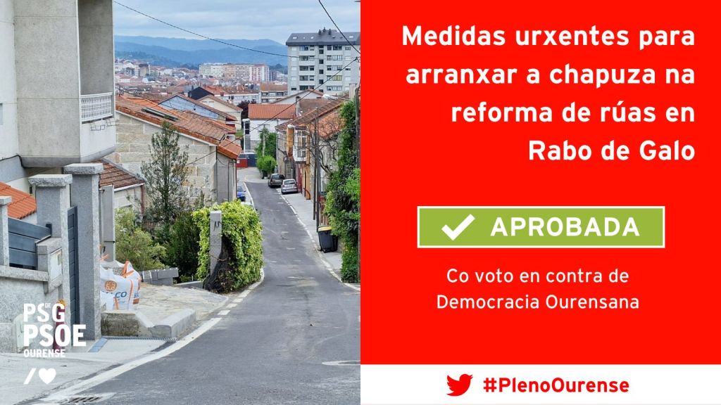 O PLENO DE OURENSE APROBOU QUE O CONCELLO POÑA SOLUCIÓNS URXENTES Á “CHAPUZA” NAS OBRAS DAS RÚAS CARBALLO E SALTO DE CAN, EN RABO DE GALO, GRACIAS A UNHA MOCIÓN DO PSOE