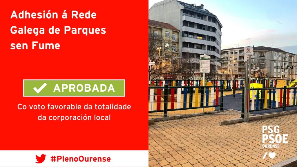 O PsdeG-PSOE da cidade tamén recibiu o respaldo unánime para que Ourense se sume á rede galega de parques sen fume e promova actividades de sensibilización con motivo do Día Mundial sen Tabaco