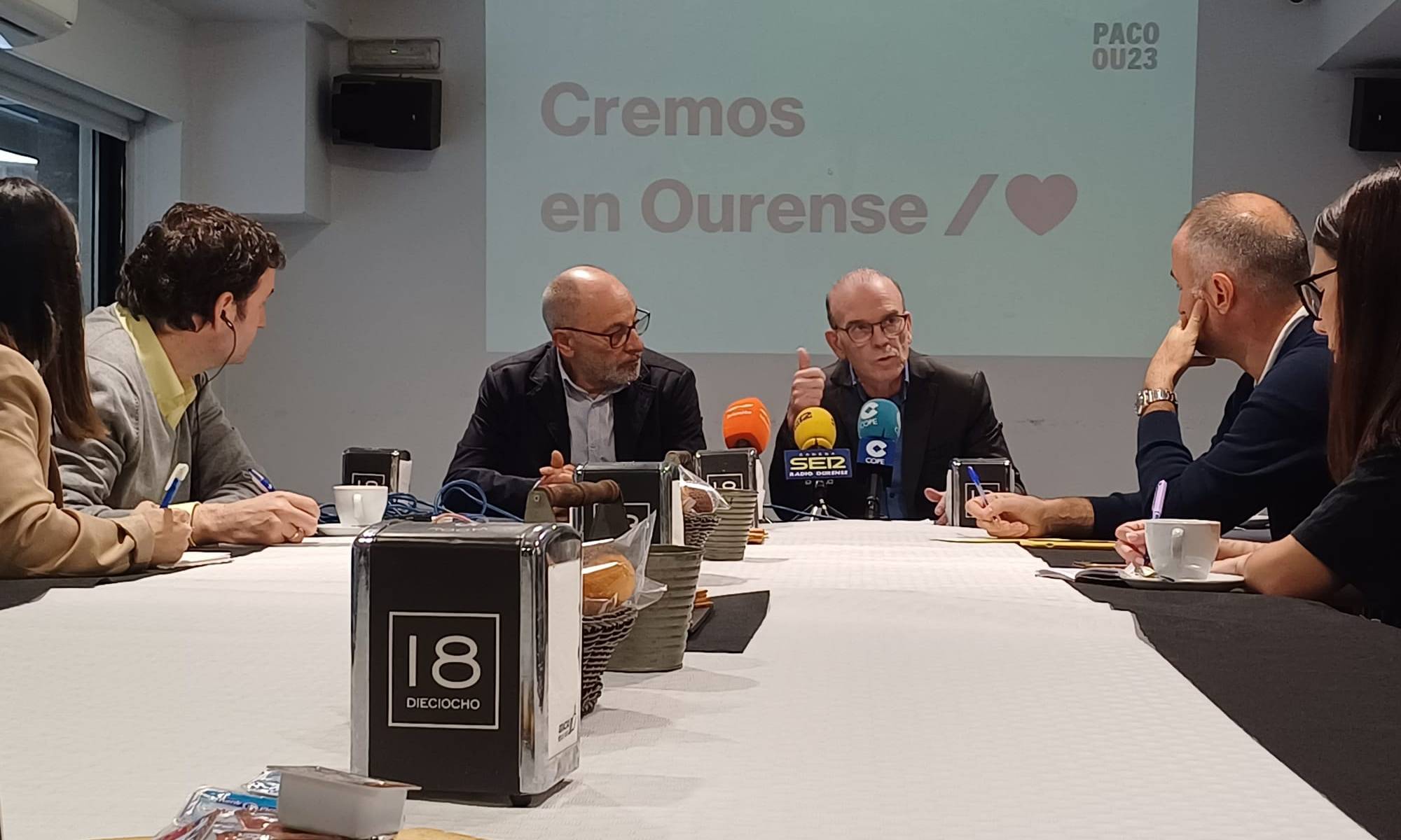 O candidato á alcaldía, Paco Rodríguez, e José Ángel Vázquez Barquero, número tres da lista para as eleccións, sinalaron que hai que pasar “da retórica aos feitos poñendo recursos económicos enriba da mesa”.