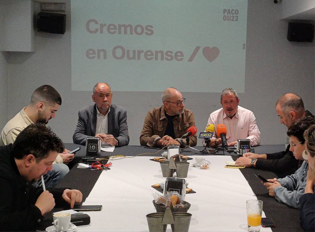 Ourense, 5 de maio de 2023. O PSdeG-PSOE de Ourense presentou hoxe as medidas no ámbito cultural, incluidas no programa electoral co que concorre ás eleccións municipais do 28 de maio, para conseguir que a cidade volva a ser un referente neste sector. Nunha rolda de prensa o candidato á alcaldía dos socialistas, Paco Rodríguez, incidiu na importancia de que a Concellería recupere o seu nome e funcións orixinais.
