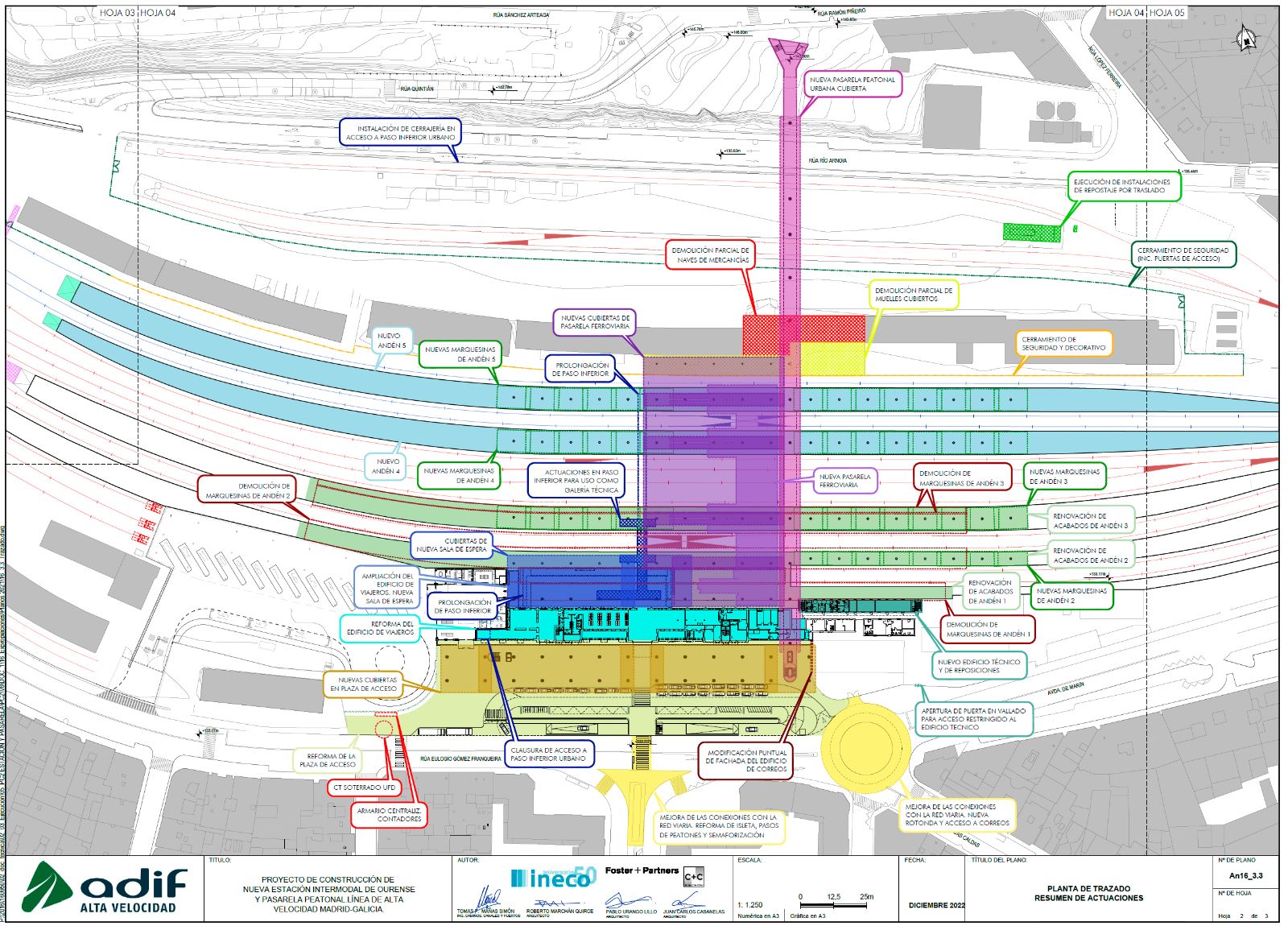 O proxecto para que o Goberno central destinará inicialmente 130 millóns de euros, tamén inclúe a cobertura parcial da praia de vías desde a avenida de Santiago, creando unha nova praza superior sobre as mesmas, que será urbanizada e axardinada. Igualmente Mitma executará unha pasarela peonil cuberta con ascensor, que cruzará todas as vías desde a praza principal da estación, así como unha nova glorieta nos cruces das avenidas de Marín, As Caldas e Eulogio Gómez Franqueira.