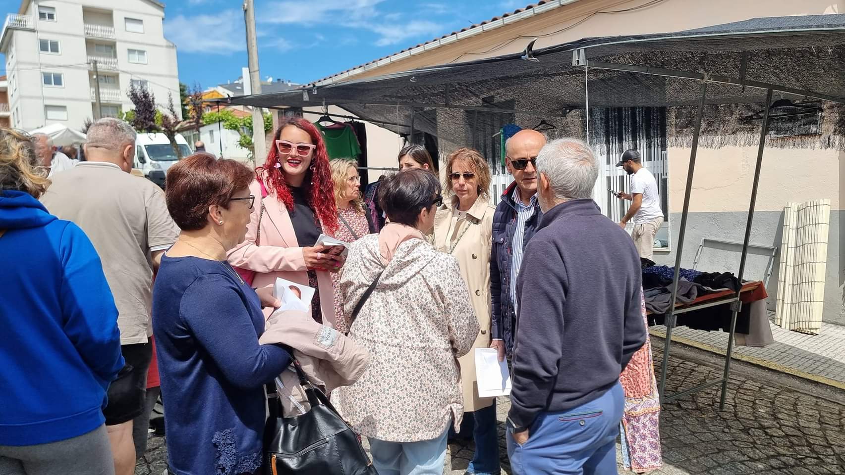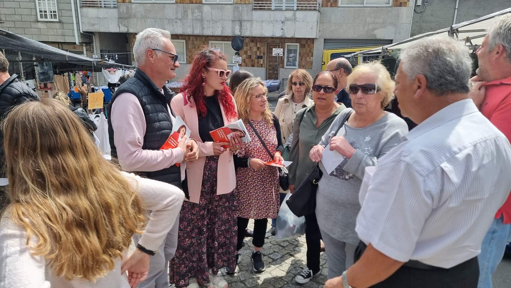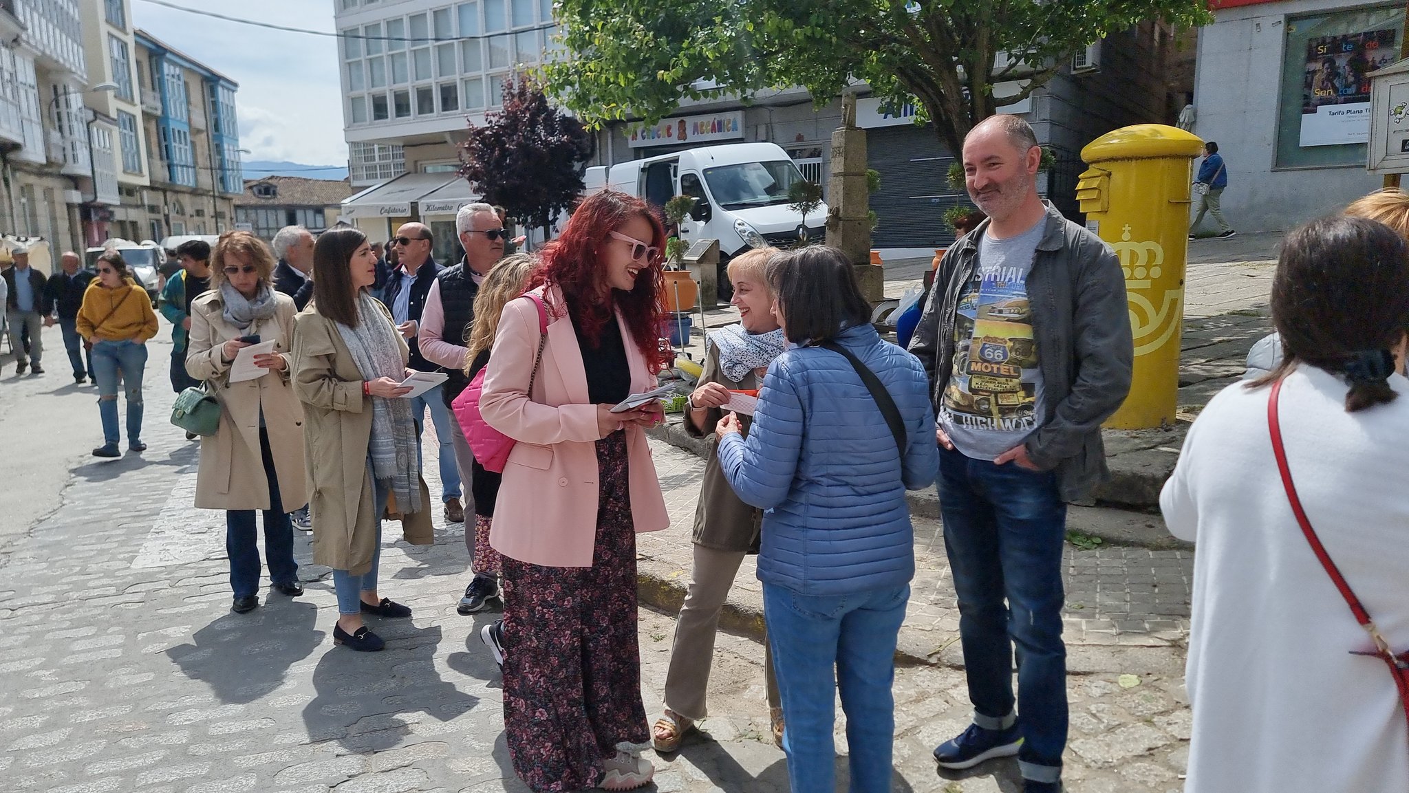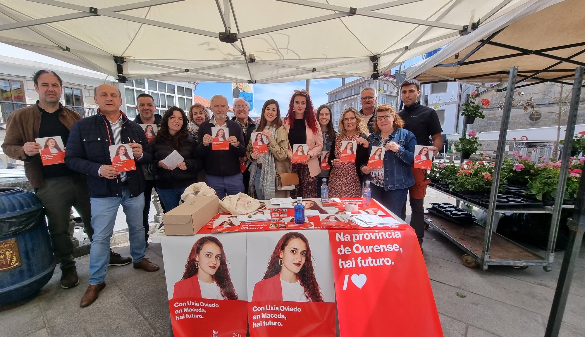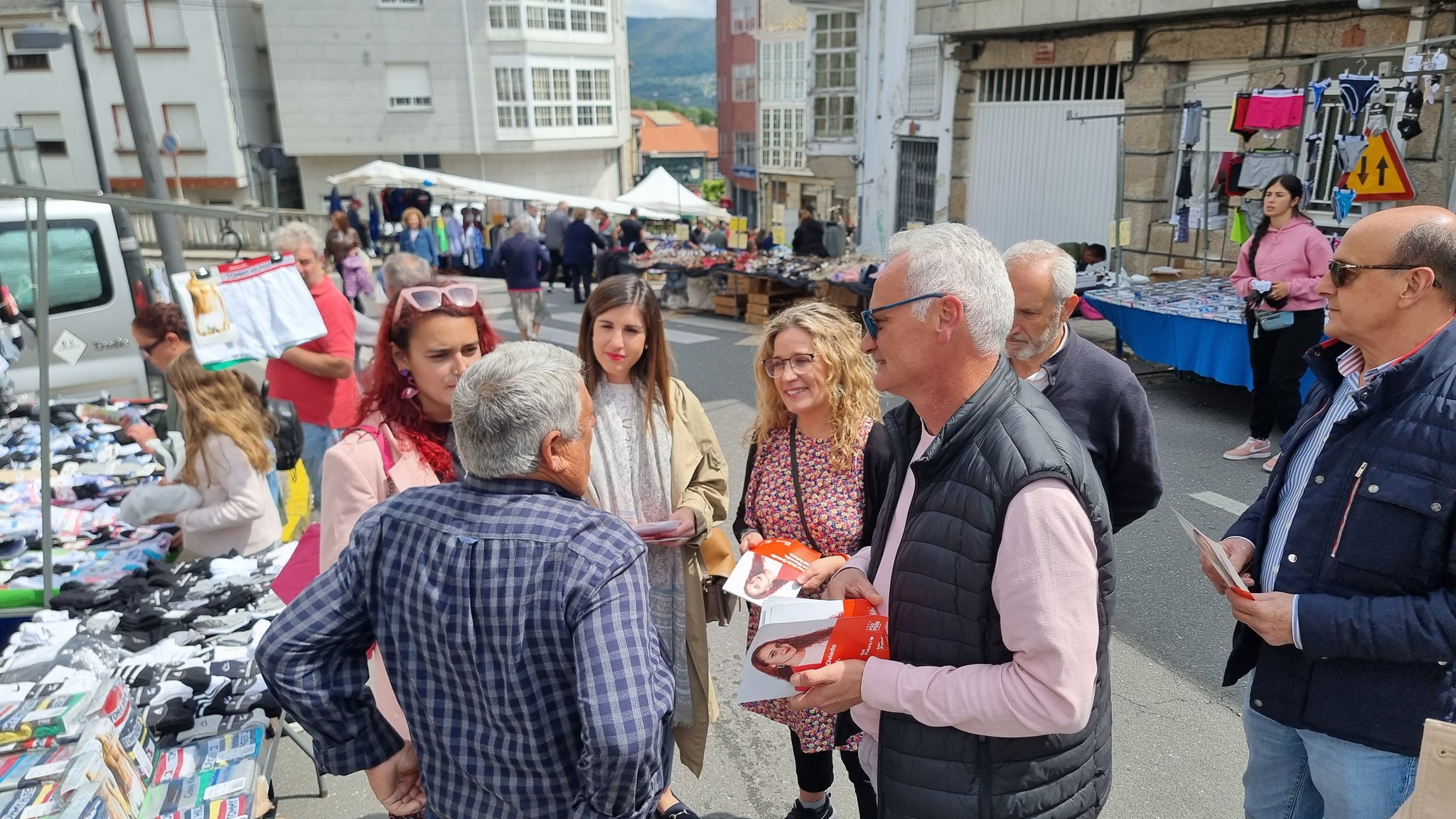 Maceda, 20 de maio de 2023. O PSdeG-PSOE vén de participar esta mañá nun reparto informativo polas rúas de Maceda, aproveitando a celebración da feira. Foron moitos os veciños e as veciñas que escoitaron atentamente as explicacións e as aclaracións sobre o programa que os e as socialistas presentan na vila.