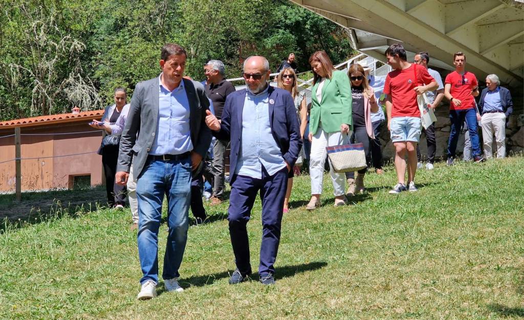 Ourense, 23 de maio de 2023. O delegado do Goberno, José Ramón Gómez Besteiro, e o aspirante á alcaldía de Ourense polo PSdeG-PSOE, Paco Rodríguez, percorreron a contorna das termas de Outariz para explicar e coñecer sobre o terreo o que será parte do bulevar termal proxectado para a cidade no caso de adquirir a confianza dos ourensáns e ourensás o vindeiro domingo nas urnas.