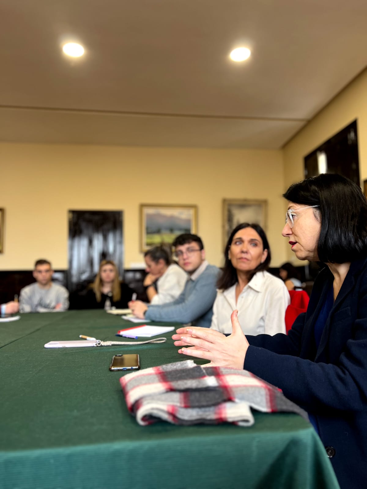 Ourense, 25 de xaneiro de 2024. Integrantes da candidatura do PSdeG á Xunta de Galicia mantiveron esta mañá un encontro con representantes do Foro Liceo para abordar diversas problemáticas nas que Ourense leva sumida demasiado tempo. As números un e tres e cinco da lista dos socialistas pola provincia, Carmen Rodríguez, Aurea Soto e Xurxo Doval; subliñaron que o vindeiro goberno autonómico ten que equilibrar a balanza para que remate o modelo a dúas velocidades do PP de Rueda e Feijóo.