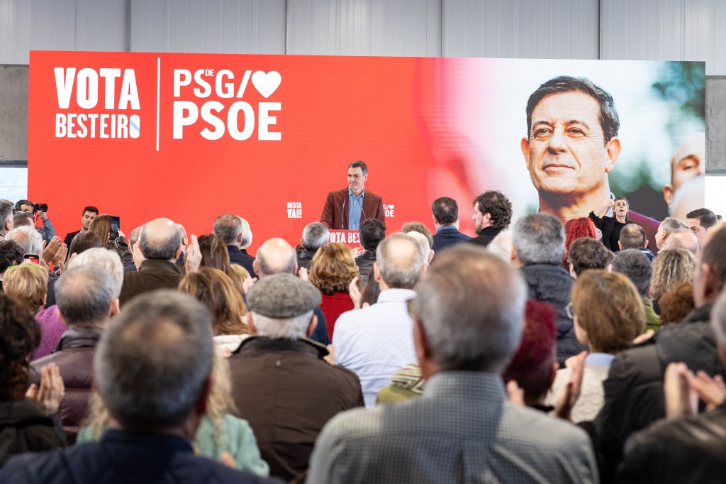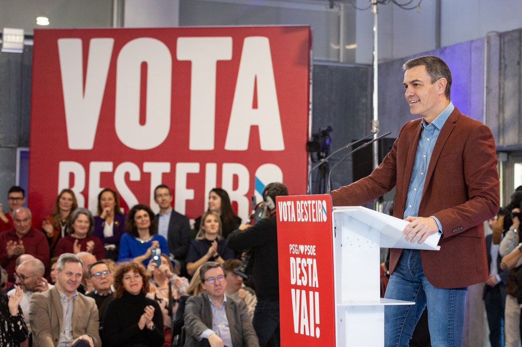 O presidente do Goberno de España, Pedro Sánchez, sinala que “só hai unha papeleta para gobernar o cambio, esa é a do PSdeG e a de Besteiro”