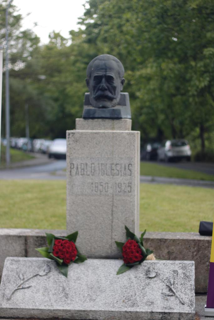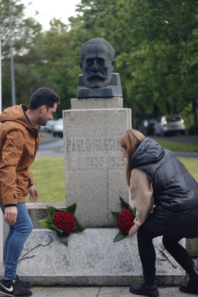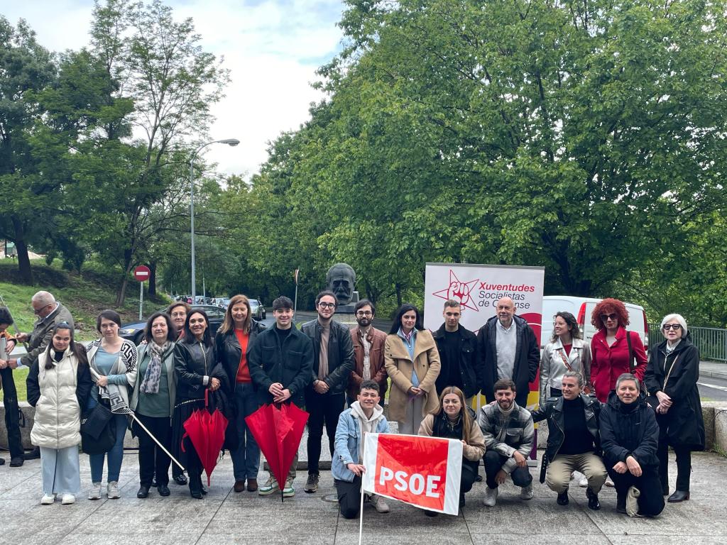 Ourense, 1 de maio de 2024. A agrupación municipal do PSdeG-PSOE de Ourense homenaxeou a figura do fundador do partido, Pablo Iglesias Posse, no xa tradicional acto que realizan cada 1 de maio diante do seu busto. A secretaria xeral da Comisión Executiva Local, Natalia González, recordou todos os avances acadados polo goberno progresista de Pedro Sánchez no eido laboral este Día Internacional dos Traballadores e Traballadoras.
