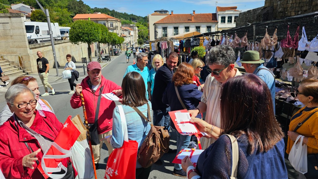 En Ribadavia, a candidatura socialista estivo acompañada por representantes da agrupación local e por outros cargos orgánicos da comarca e provincia, que aproveitaron o día de feira para facer un reparto informativo, explicando as principais propostas do partido de cara as vindeiras eleccións europeas.