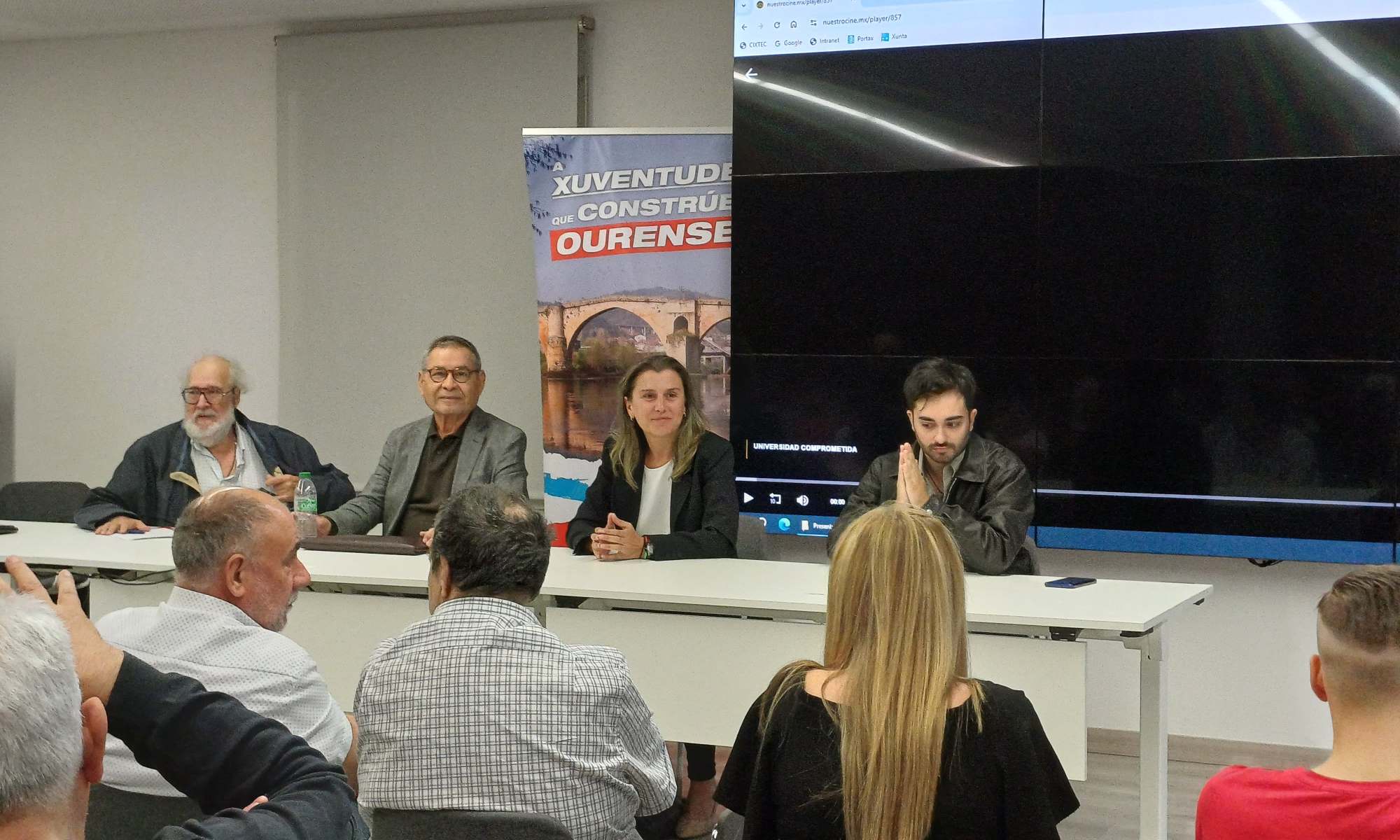 Pola súa banda, Xosé Lois Carrión (secretario de Memoria Histórica da CEM) estableceu unha relación entre o poñente, exiliado por culpa do golpe de Estado, co documental ‘Universidad comprometida’ sobre o extraordinario discurso do presidente chileno filmado por Carlos Velo (cineasta ourensán a quen o franquismo fixo tamén exiliado en México). Un filme que recolle a que está considerada como unha das mellores intervencións políticas en público do século XX e que os asistentes puideron visualizar.