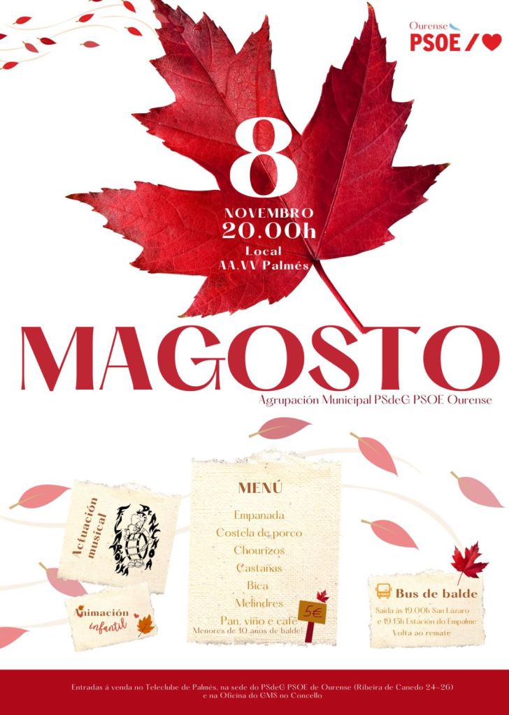 Ourense, 7 de novembro de 2024. A agrupación municipal do PSdeG-PSOE de Ourense celebra este venres un magosto popular aberto á cidadanía que desexe participar. A iniciativa diríxese, na liña das actividades programadas ao longo de todo este ano dende a Comisión Executiva Municipal, para achegar aos e ás ourensás ao partido e defender a cultura e tradicións da cidade.