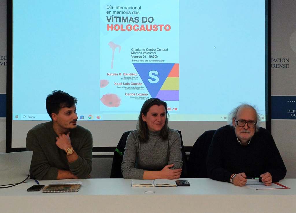 Pola súa banda, a secretaria xeral do PSdeG en Ourense, Natalia González, afirmou o compromiso do partido para facer memoria e divulgar ante o aumento dos discursos de odio e de extrema dereita que urxe combater dende a trincheira da palabra e coa historia presente. “Non podemos permanecer distantes respecto do noso pasado. Non podemos relativizar o que aconteceu se queremos evitar que se repita non só en Alemaña, senón en calquera país”, afirmou durante a súa intervención.