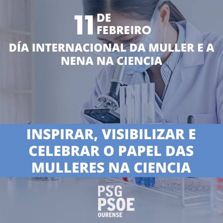 Este 11 de febreiro, o Partido Socialista celebra todos estes grandes avances lexislativos e as políticas no ámbito da ciencia e a innovación que España deu coa nova Lei de Ciencia cara á igualdade efectiva entre mulleres e homes no ámbito científico e tecnolóxico. O compromiso feminista do Partido Socialista está presente en cada institución porque unha sociedade xusta, democrática e digna é aquela que fai do compromiso coa igualdade o seu motor político. Os e as socialistas animamos a toda a cidadanía a asistir e participar, especialmente coas nenas e os nenos, nas actividades que, desde os organismos públicos, museos, organizacións científicas, institucións e colectivos sociais, celébranse con motivo do Día Internacional da Muller e a Nena na Ciencia.
