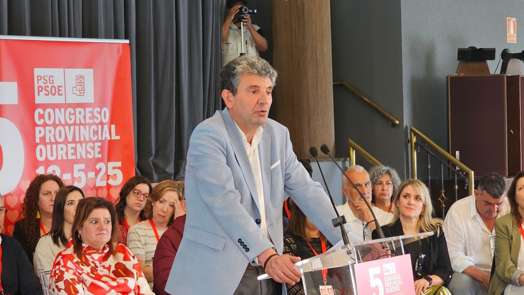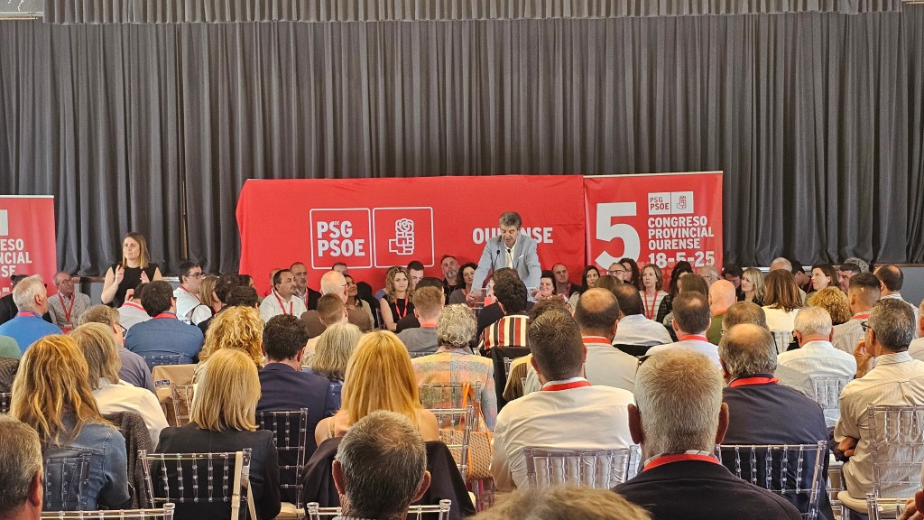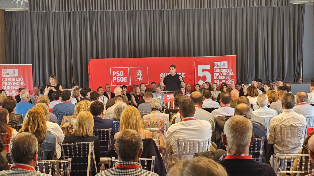 Ourense, 18 de maio de 2025. O PSdeG-PSOE de Ourense clausurou esta tarde o 5º Congreso Provincial no que Álvaro Vila Araújo, vencedor das últimas eleccións primarias, foi proclamado secretario xeral das e dos socialistas. Neste proceso congresual celebrado en Santa Cruz de Arrabaldo, participaron máis de 250 persoas entre delegadas, delegados, convidadas e convidados, cunha mesa presidida por Diego Alonso e no que tiñan dereito a voto 96 delegadas e delegados.