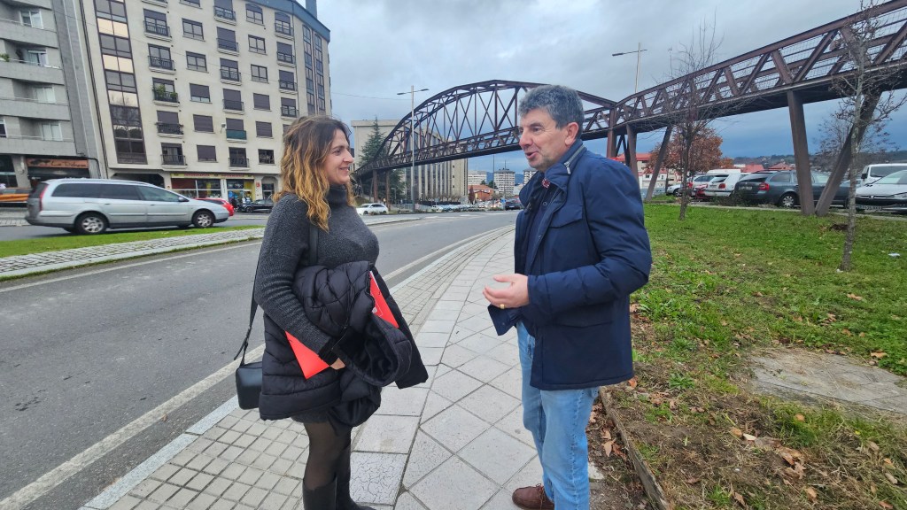 Ourense, 13 de xaneiro de 2025. O voceiro do Grupo Provincial Socialista na Deputación de Ourense, Álvaro Vila, acompañado da deputada Marina Vaz, presentou na propia Avenida Otero Pedrayo unha moción que levará ao próximo pleno da institución provincial na que esixe recuperar o proxecto de soterramento desta vía para integrar o Campus Universitario e acabar cunha barreira urbana nun dos eixos de maior densidade de tráfico da cidade. Os socialistas critican que o convenio asinado o pasado 7 de xaneiro entre o Concello de Ourense e a Xunta de Galicia para investir 340.000 euros en crear un «refuxio climático» na zona con novas árbores e pavimentos sexa «insuficiente» e «peche durante anos a oportunidade de acometer unha transformación estrutural que a cidadanía ourensá reclama desde hai máis de tres décadas».