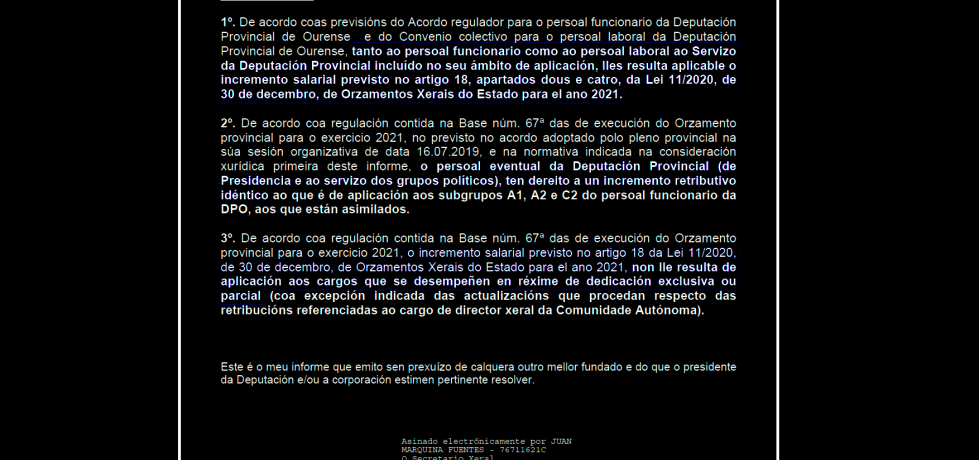 O secretario da Deputación confirma que Baltar adeuda irregularmente parte do salario a centos de empregados