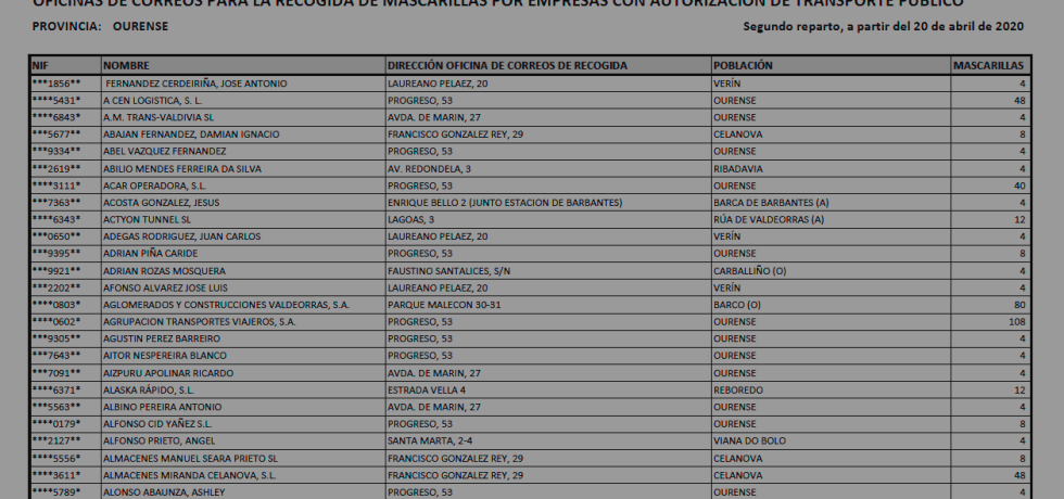 A subdelegación do Goberno entrega máis de 45.000 mascarillas ó Concello e Deputación